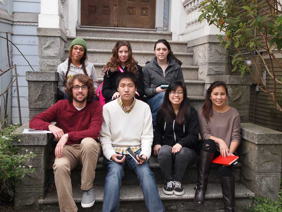 Students in Front of Haight Street Victorian House: Andy Cole, Yihan Jiang, Caren Balence, Rachel Kaya, Ma'Keda Habtemariam, Maria Morelli, Dior Geyton